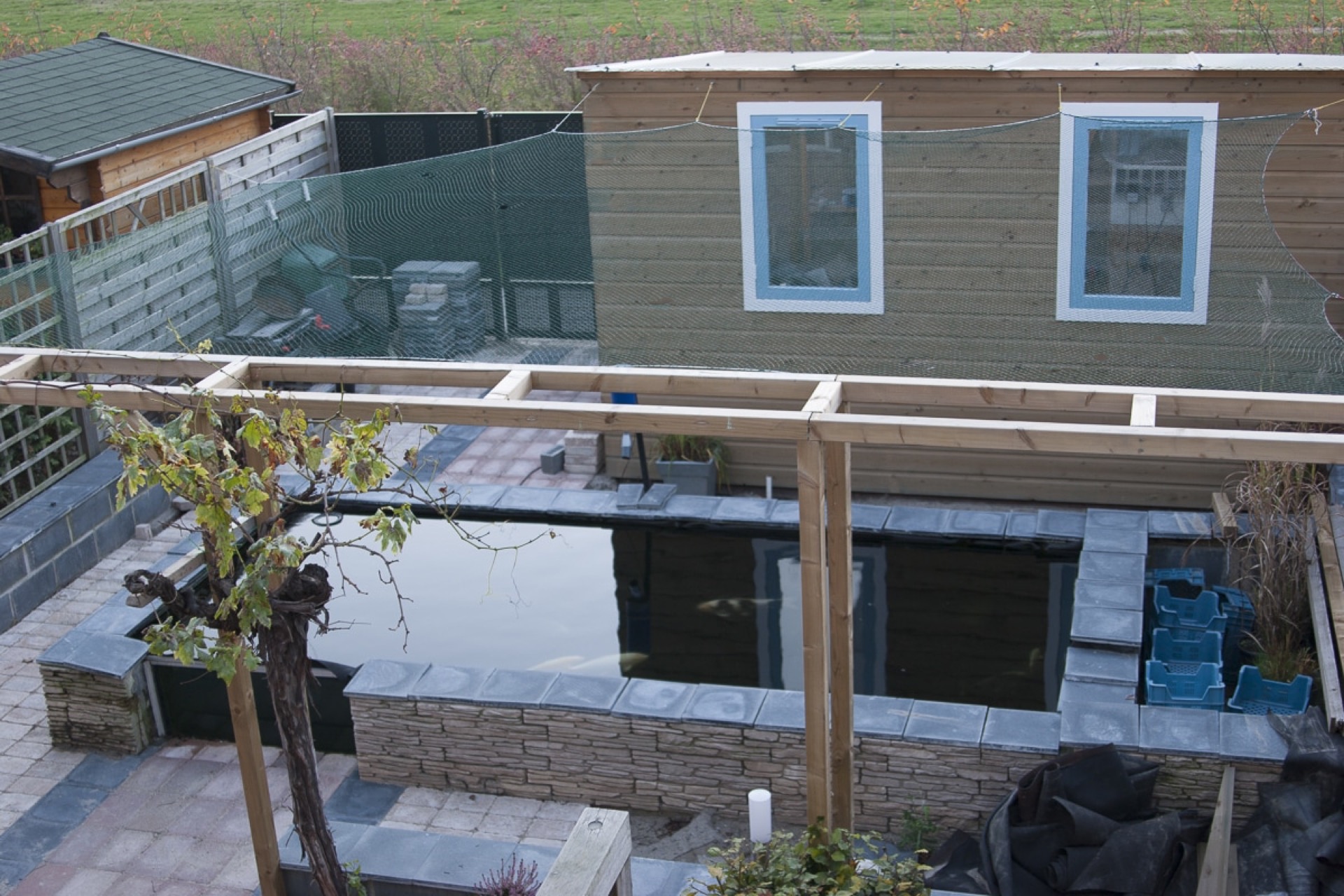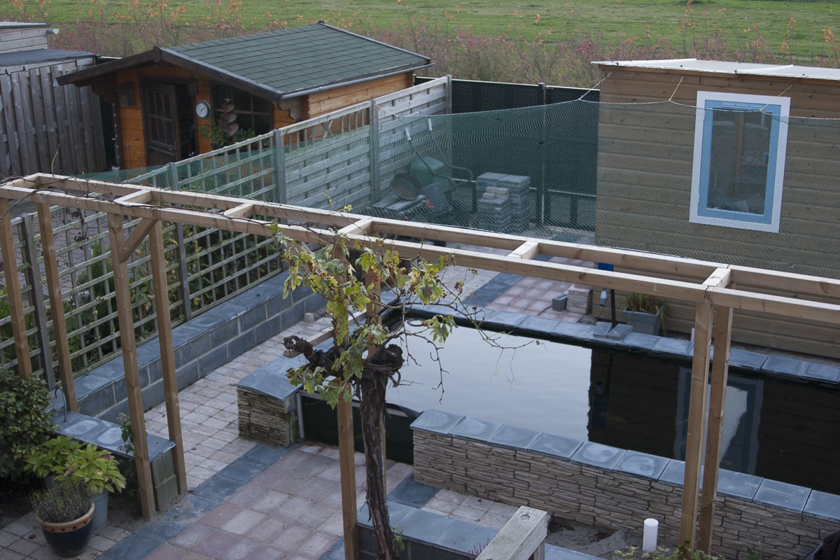 De opdrachtgever heeft de tuin inclusief de vijver zelf aangelegd.