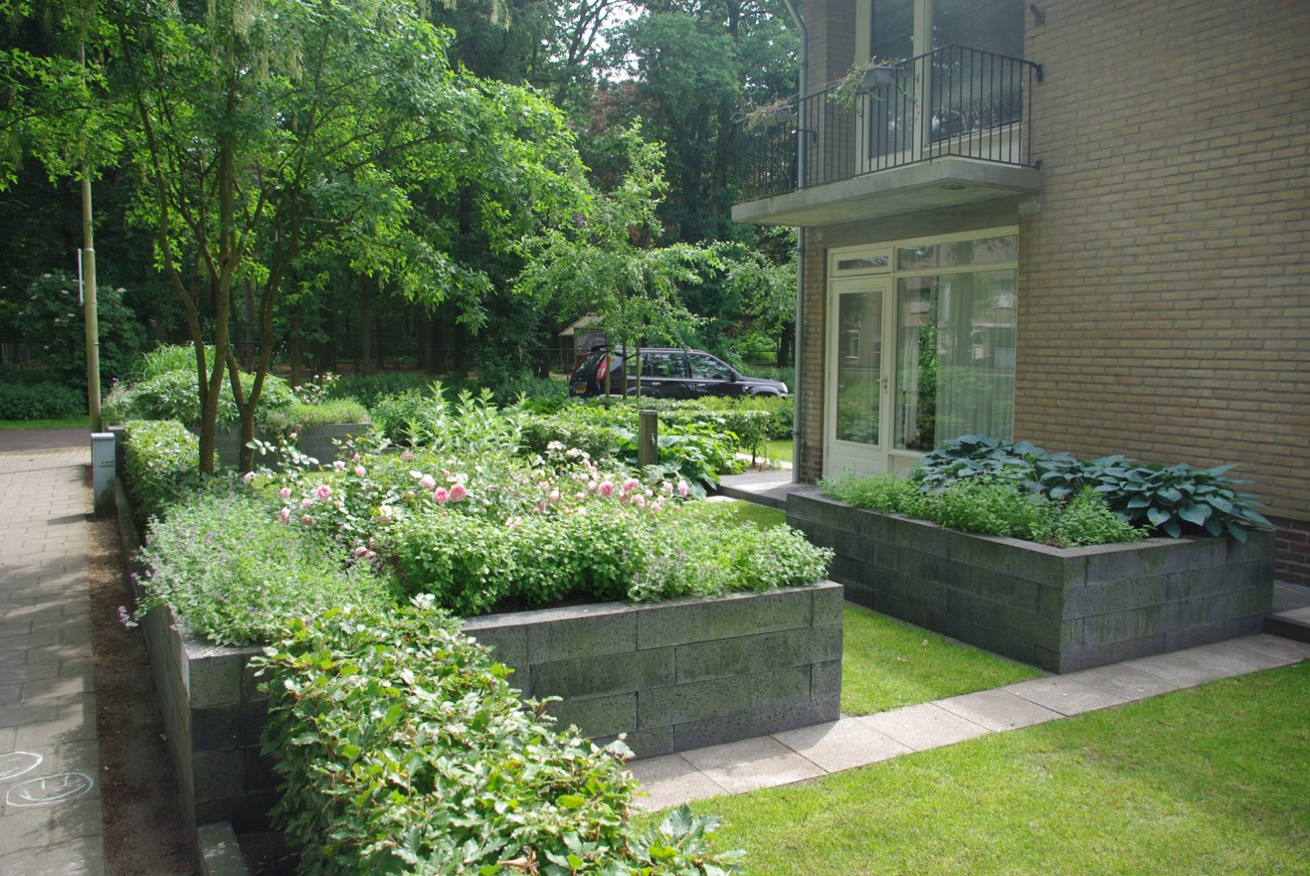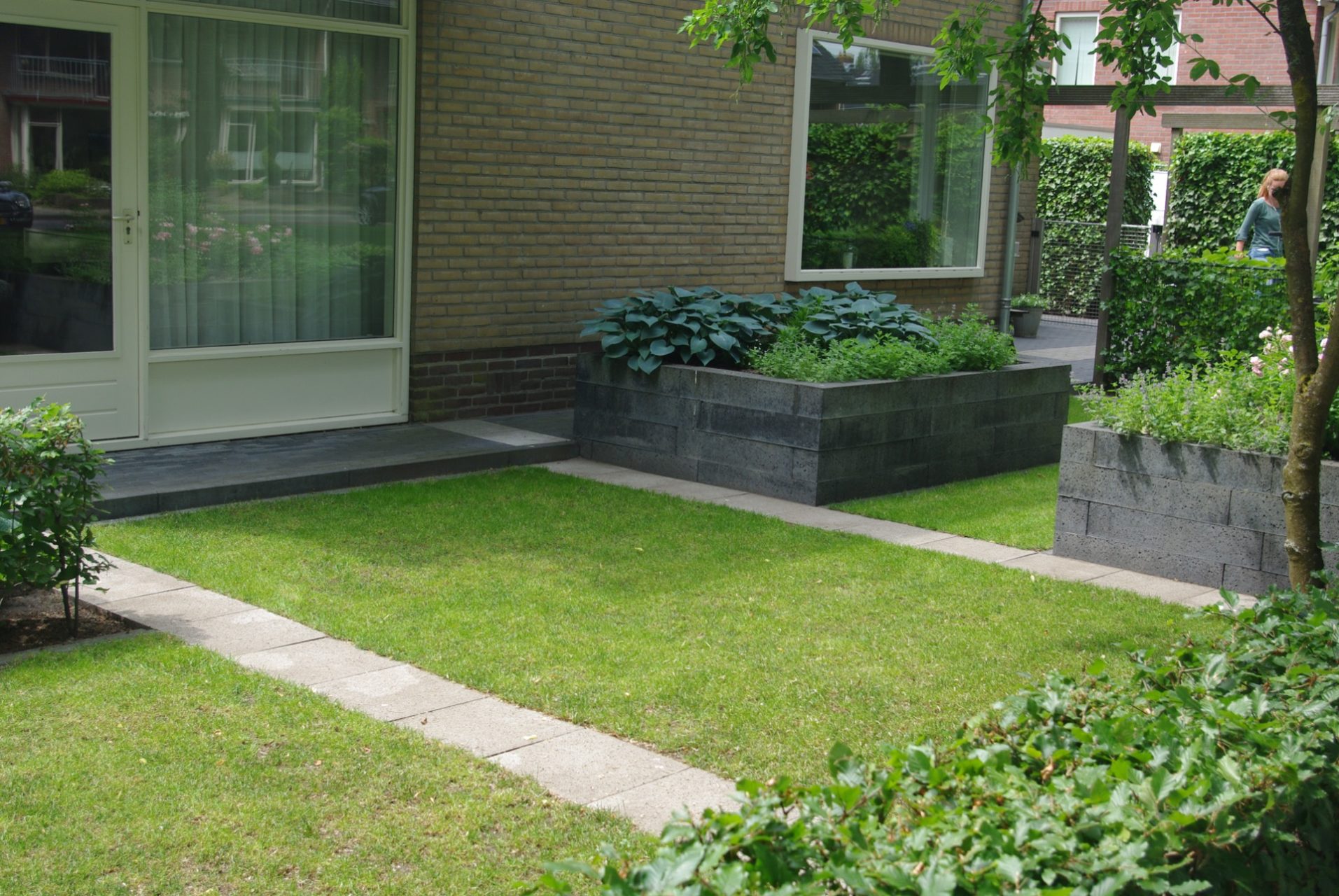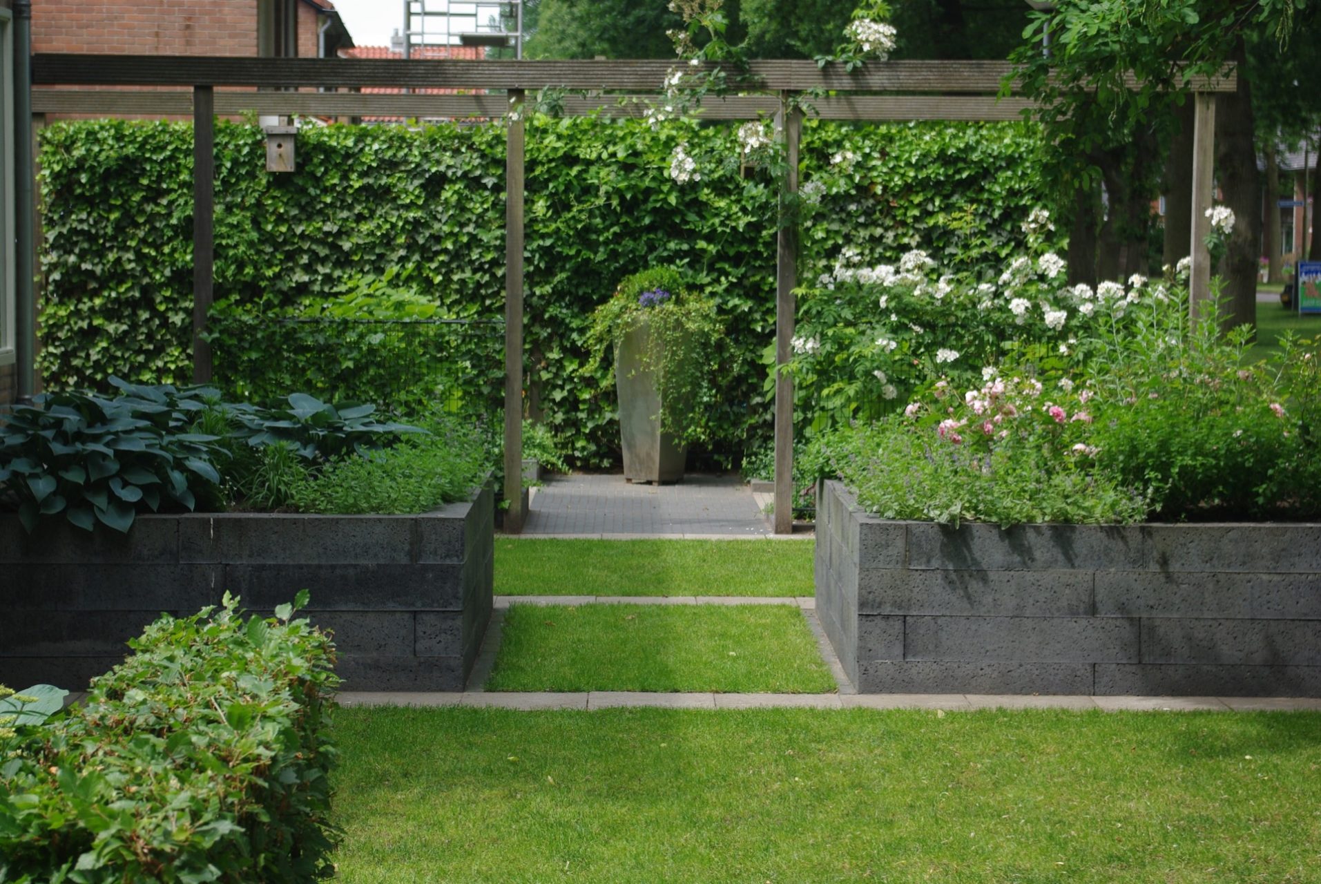 De opdracht was om een strakke tuin te 0ntwerpen met verhoogde plantenbakken, open van karakter zodat er vanuit de woning veel zicht is op de tuin en de omgeving. Daarnaast was de wens veel bloeiende bloemen en planten.