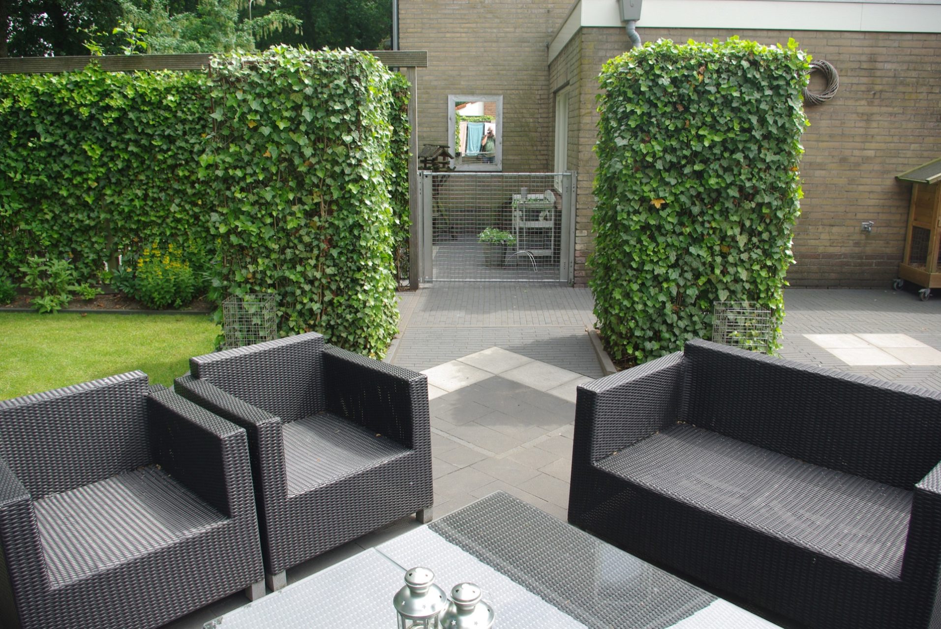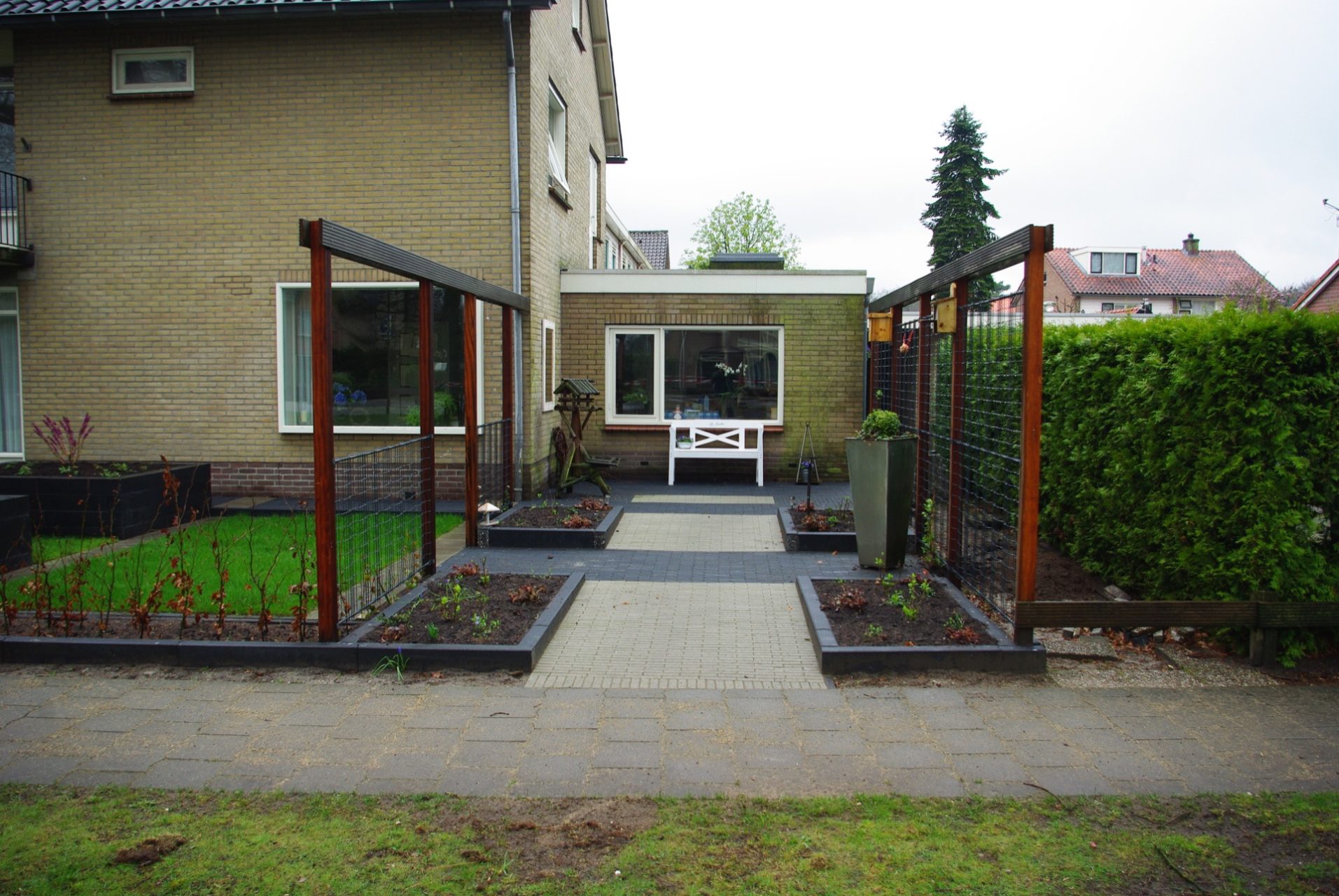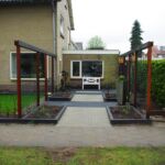 De tuin is in twee fases door de eigenaar zelf gerealiseerd. Tuin@vice heeft  de bestratingsmaterialen geleverd en  advies en begeleiding gegeven.